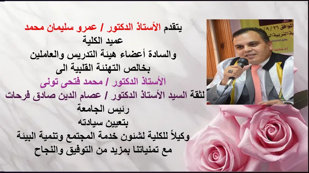Félicitations au Prof Dr. Mohamed Fathy Tony pour sa nomination au poste de vice-doyen chargé du service communautaire et des affaires de développement environnemental.
