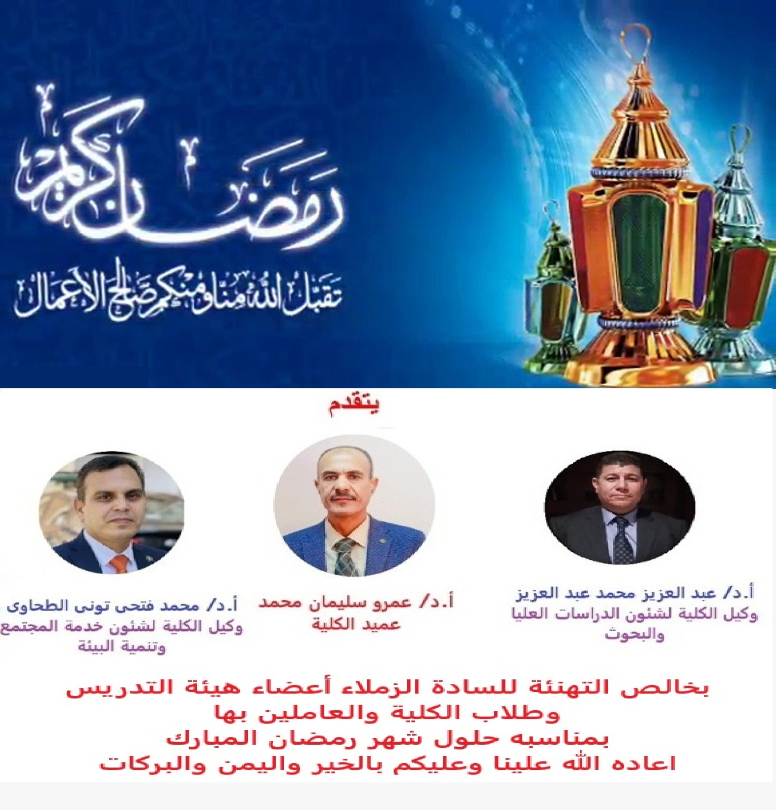 Le doyen de la faculté présente ses félicitations à l'occasion du mois sacré du Ramadan.