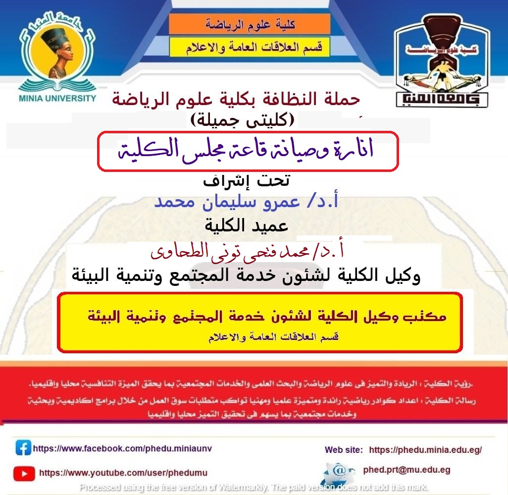 حملة النظافة بكلية علوم الرياضة (كليتى جميلة) - انارة وصيانة قاعة مجلس الكلية