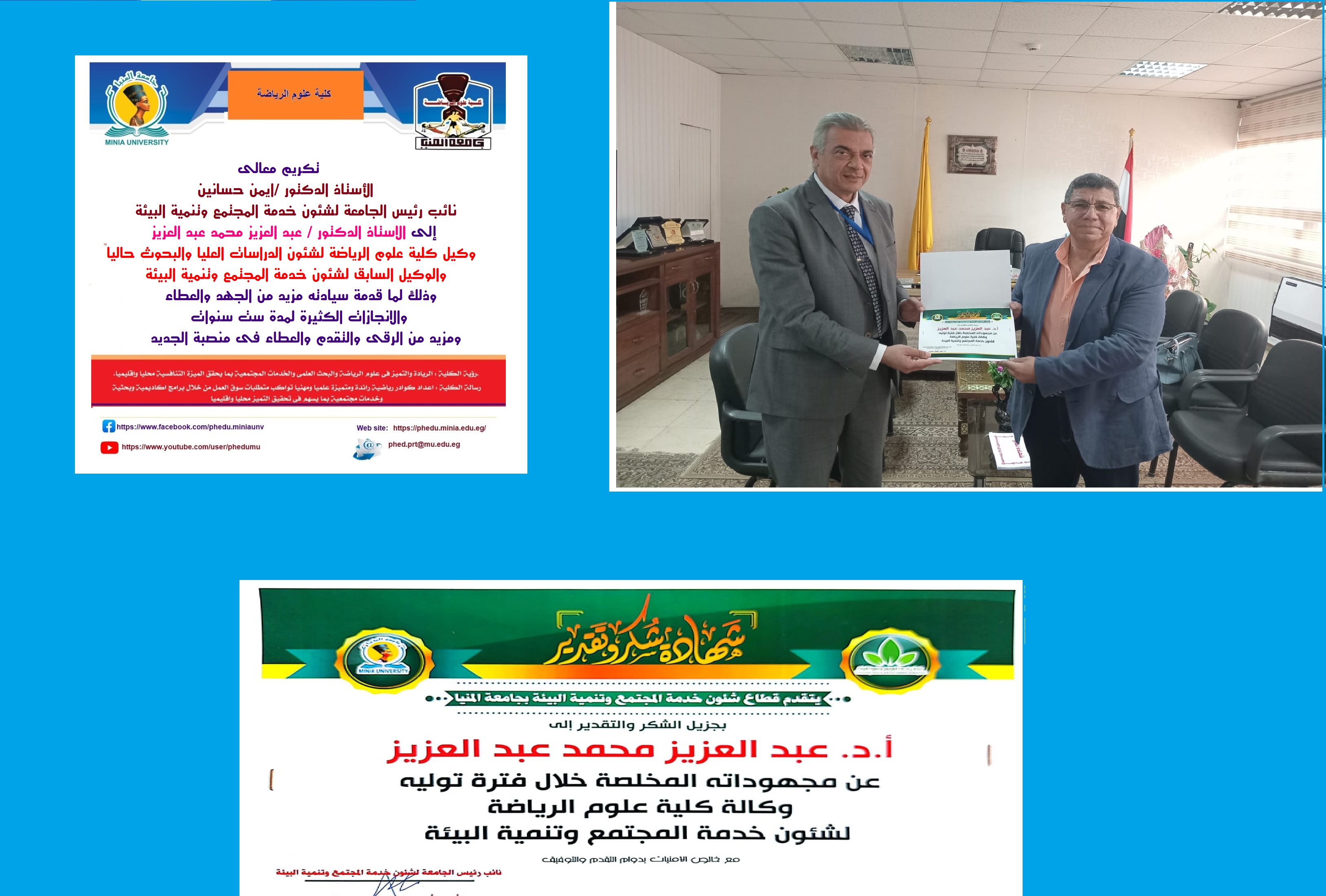 مشاركة كلية علوم الرياضة جامعة المنيا فى تكريم المتميزين من ذوى القدرات والهمم من ابناء محافظة المنيا