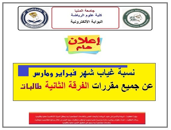 نسبة غياب الفرقة الثانية طالبات (شهر فبراير ومارس )
