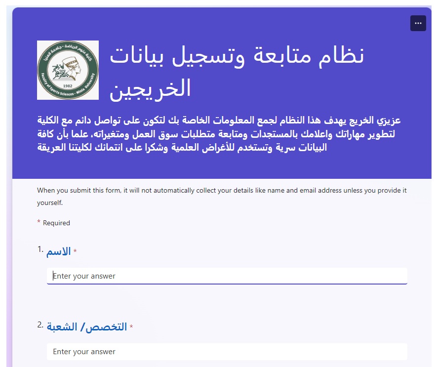 استمارة تسجيل الدوره التدريبيه ورياده الأعمال بجامعه المنيا