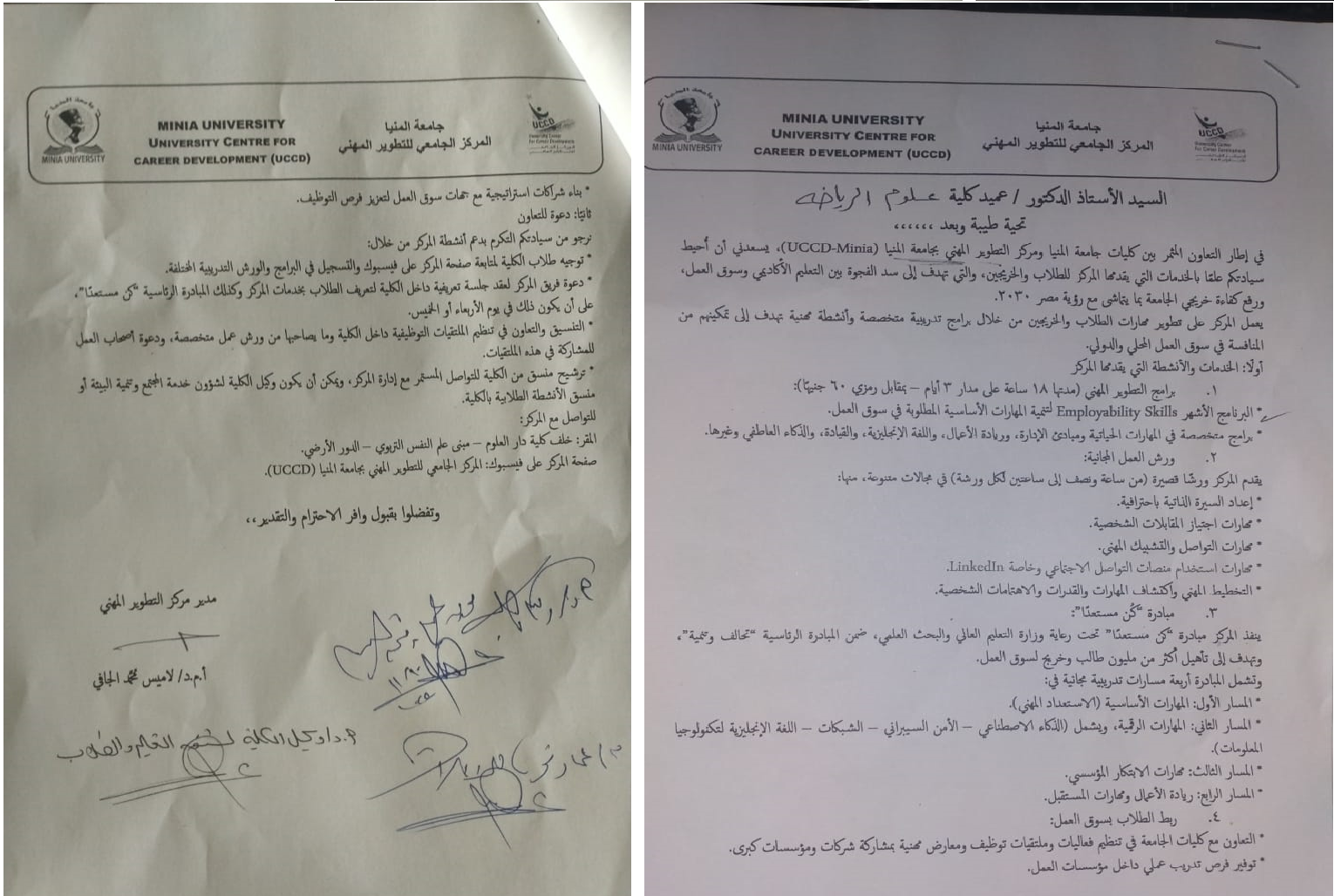 الخدمات التى يقدمها مركز التطوير المهنى للطلاب والخريجين