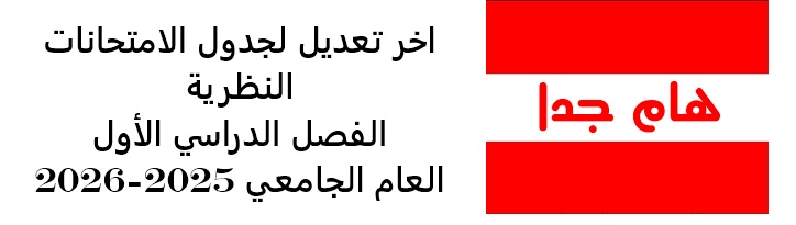 اخر تعديل لجدول الامتحانات النظرية الفصل الدراسى الاول العام الجامعى 2025-2026